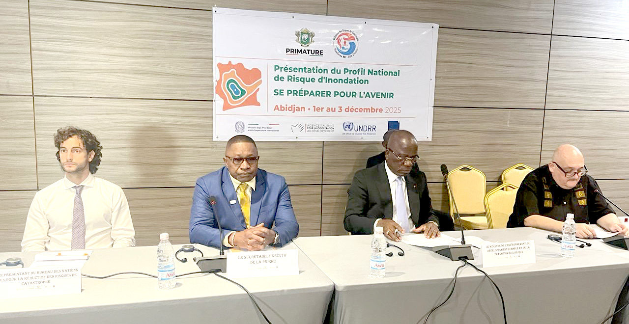 Abidjan, le 3 décembre 2025 – Afin de prévenir et de réduire les impacts des catastrophes sur la croissance économique et le développement national, la Côte d'Ivoire s'est dotée d'un Profil National du Risque d'Inondation. La présentation officielle de cet outil stratégique d'aide à la décision s'est tenue lors d'un atelier organisé du 1er au 3 décembre 2025 à Abidjan-Marcory, autour du thème : « Évaluation du risque à l'action précoce : renforcer la résilience aux inondations en Afrique de l'Ouest ».