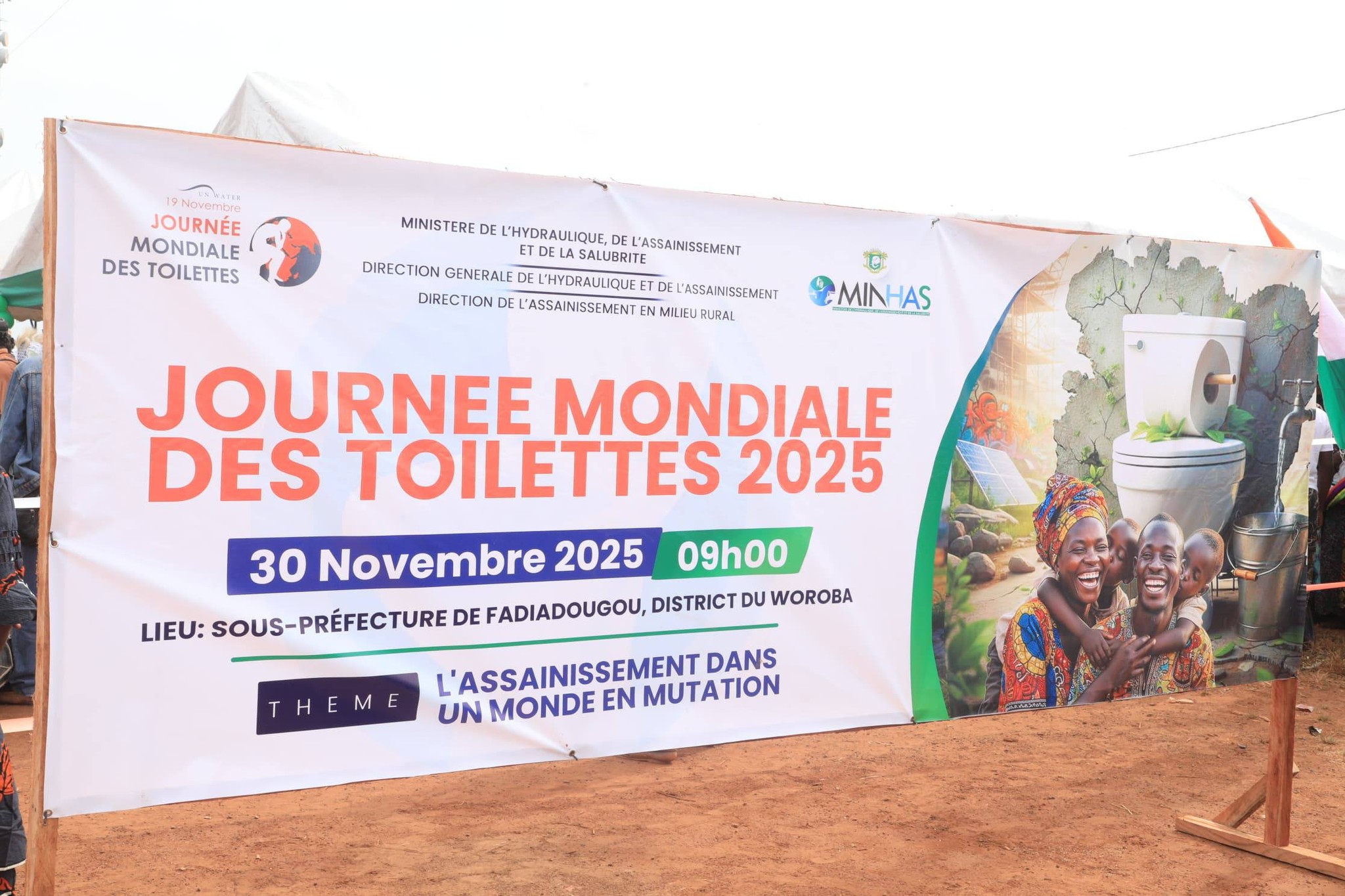 Abidjan, le 03 décembre 2025 - A la faveur de la cérémonie officielle de la Journée mondiale des toilettes (JMT), célébrée à Fadiadougou (Sous-préfecture de Kani), le dimanche 30 novembre 2025, le ministre de l'Hydraulique, de l'Assainissement et de la Salubrité, Bouaké Fofana a appelé à un engagement collectif pour la latrinisation des écoles et villages.