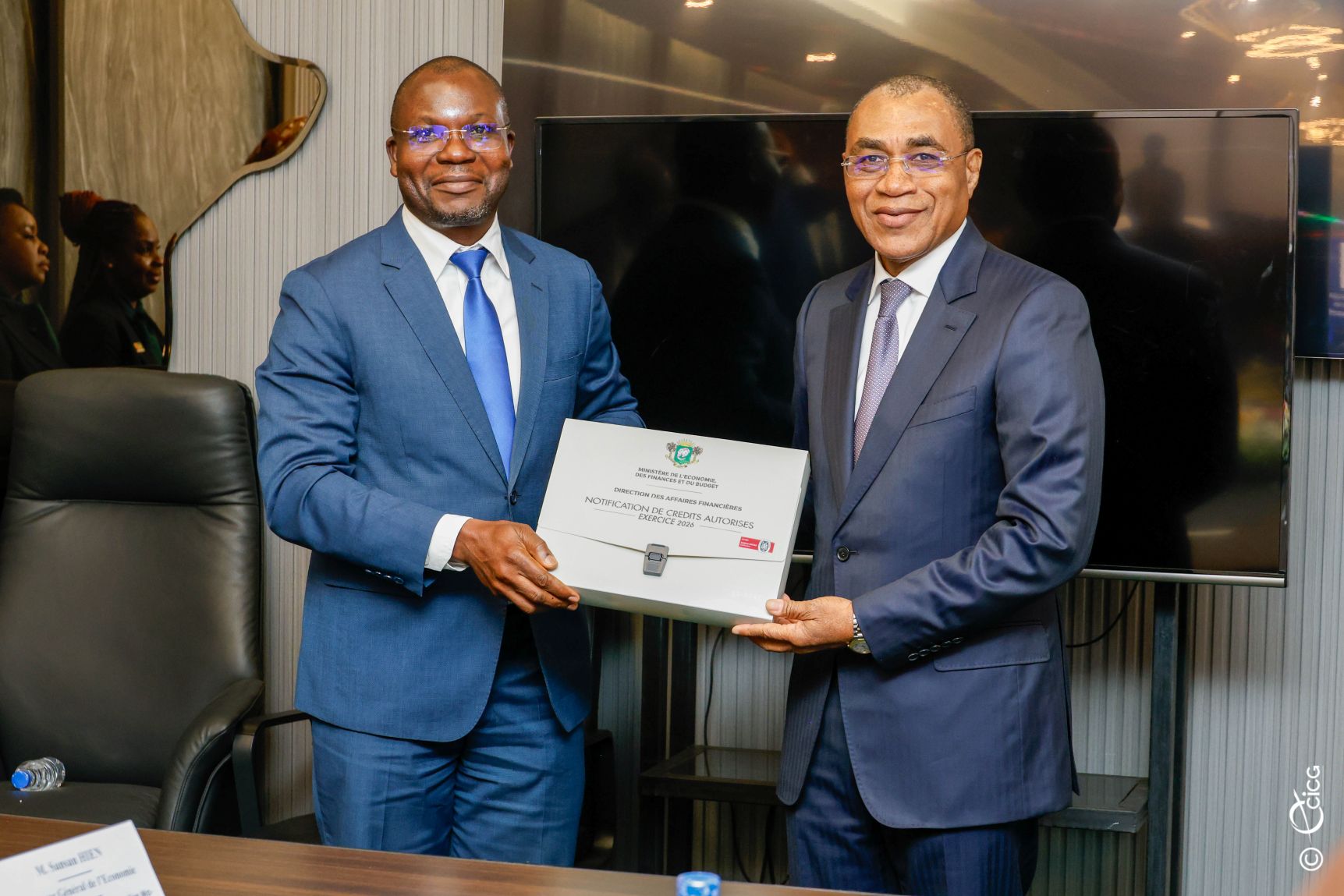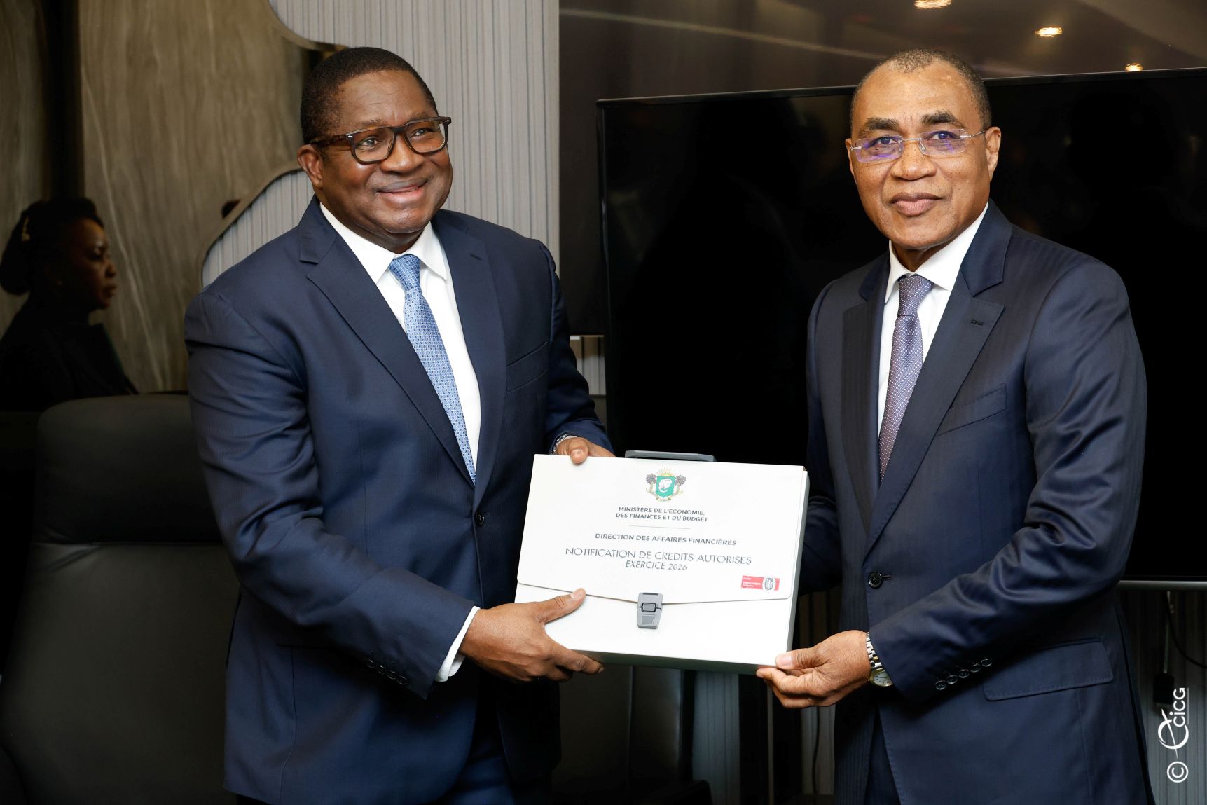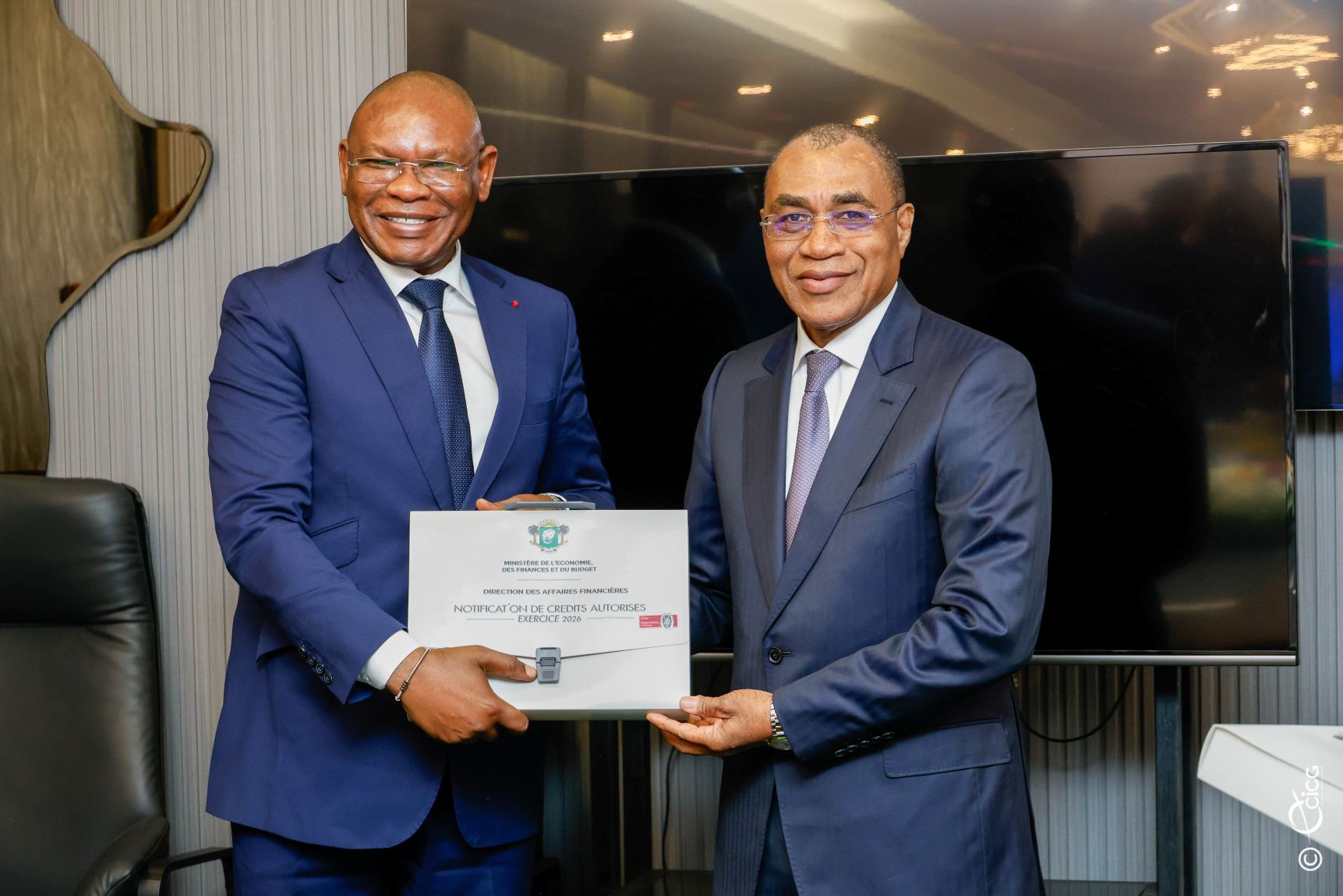 Abidjan, le 26 février 2026- Le ministre de l'Économie, des Finances et du Budget, Adama Coulibaly, et les responsables de programmes de son ministère, notamment des Marchés publics, du Budget, des Impôts, du Trésor et de la comptabilité publique, de l'Administration générale, des Douanes, de la Gestion des financements, et de la Gestion macro-économique et politique économique et financière, ont signé officiellement les lettres d'engagement sur la performance pour l'exercice 2026.
