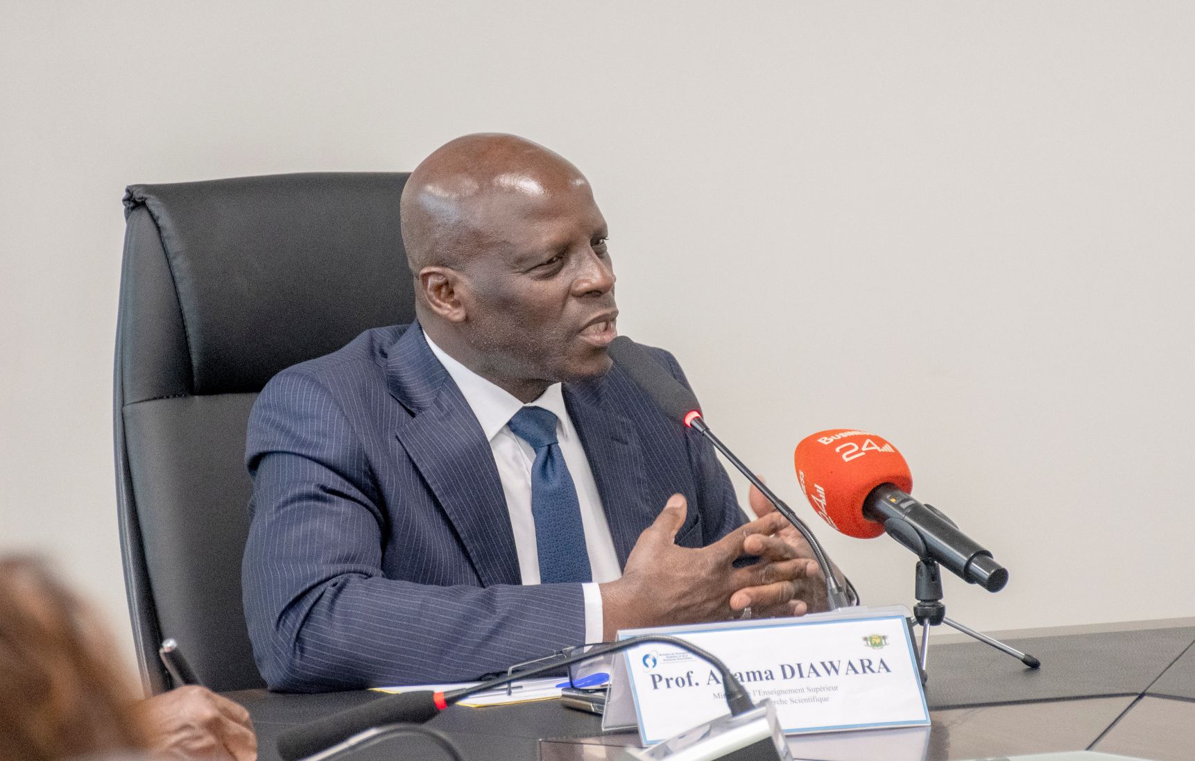 "Aujourd'hui, nous recevons un partenaire de l'Université de Montpellier, précisément du Centre spatial de l'Université de Montpellier, en vue d'une collaboration franche qui va porter, dans un premier temps, sur la formation des premiers spécialistes du spatial ivoirien, et ensuite sur la réalisation du nanosatellite, ne serait-ce que des deux premiers satellites que nous allons fabriquer au niveau de la Côte d'Ivoire", a indiqué Adama Diawara.