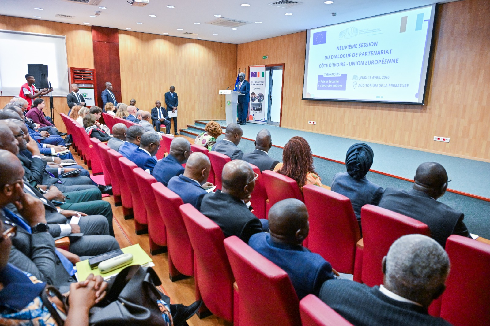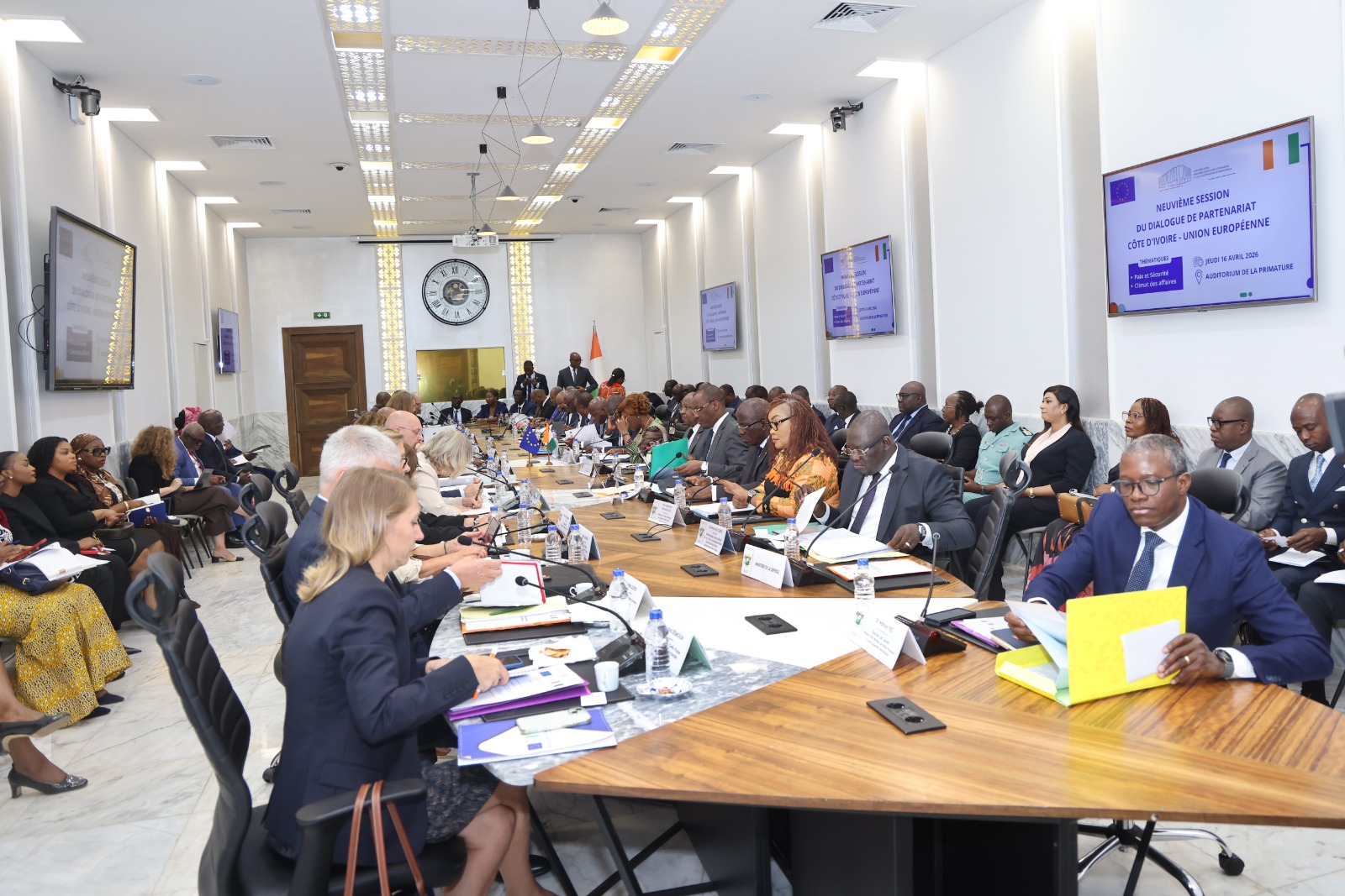 Abidjan, le 16 avril 2026 – La 9e session du Dialogue de partenariat entre la Côte d’Ivoire et l’Union européenne (UE) s’est tenue, ce jeudi 16 avril 2026 à l’Auditorium de la Primature, sous la présidence du Premier Ministre, Robert Beugré Mambé.