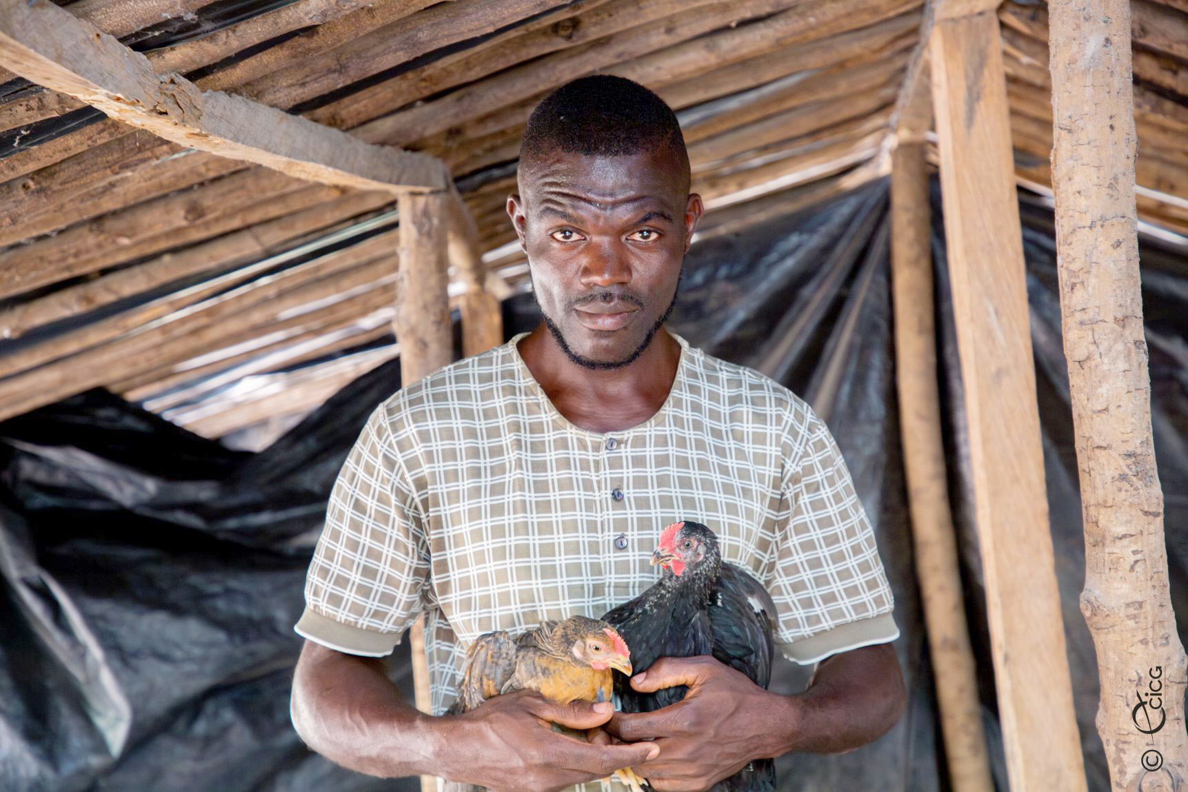 Après avoir quitté l’école en classe de seconde, faute de moyens financiers, il traverse une longue période de chômage. L’allocation de 36 000 francs CFA par trimestre, reçue dans le cadre du programme, lui permet finalement de lancer un projet d’élevage de volailles.