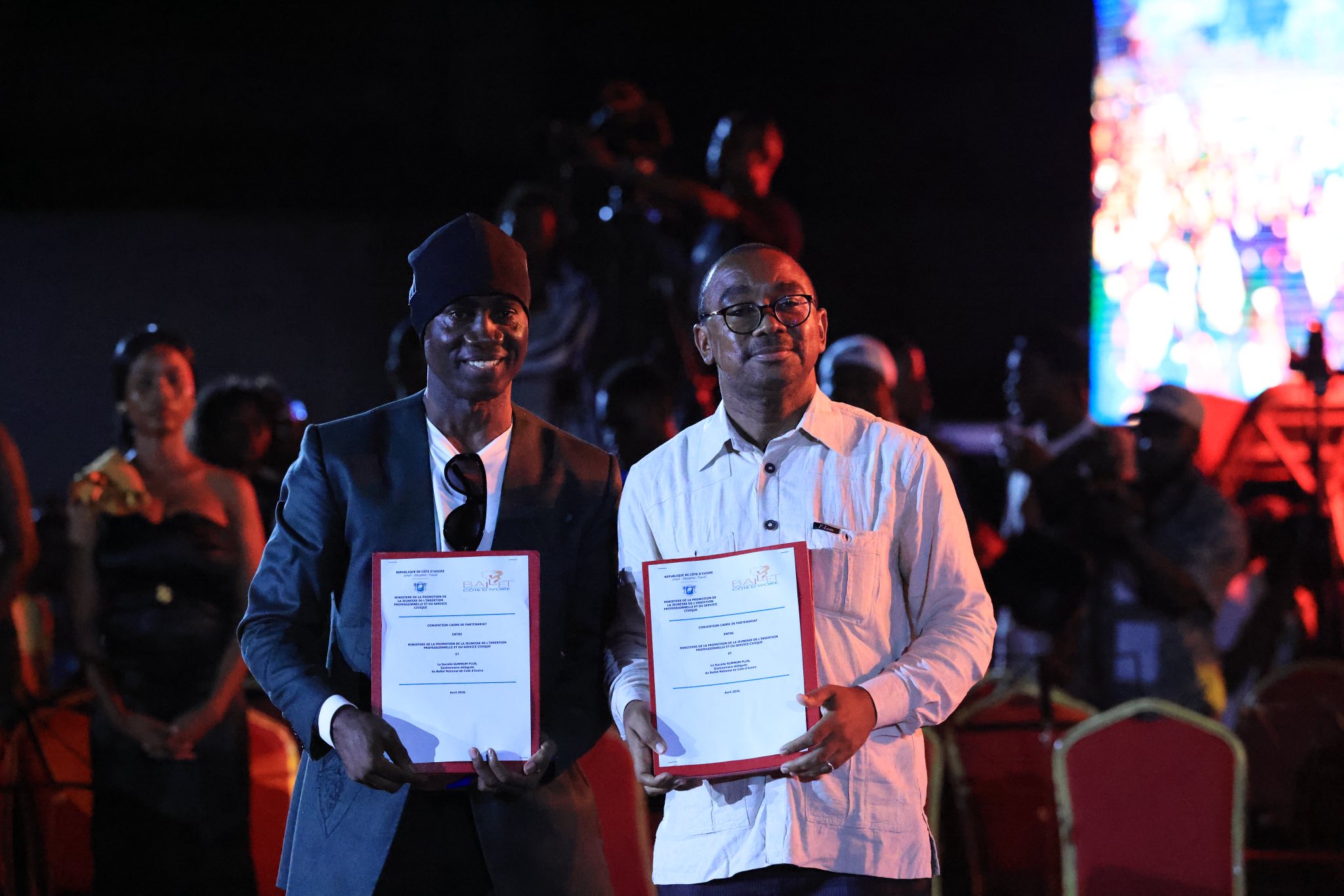 Par ailleurs, une convention a été signée entre le Gouvernement de Côte d’Ivoire, à travers le ministère de la Promotion de la Jeunesse et de l’Insertion professionnelle et du Service civique et le directeur du Ballet national, Georges Momboye, chorégraphe ivoirien. Il s’agit de donner une seconde chance à des jeunes qui sont sortis du circuit scolaire par la danse.