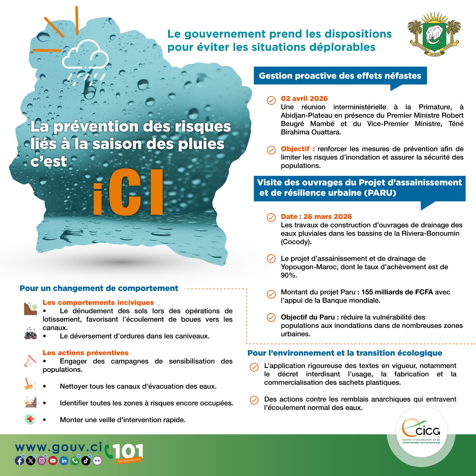 Comme chaque année, à l’approche de la saison des pluies, le gouvernement ivoirien active le dispositif de gestion des effets des pluies. Cette proactivité vise à réduire les risques liés aux fortes précipitations qui peuvent avoir de graves conséquences.