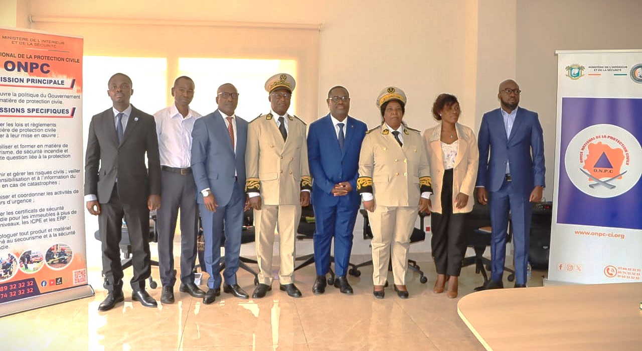 En Côte d’Ivoire, l’Office National de la Protection Civile, ONPC, est l’organe public en charge de la mise en œuvre de la politique du gouvernement en matière de protection civile. À ce jour, son déploiement opérationnel se situe à 45 Centres de Protection Civile et 08 compagnies d'incendie et de secours sur l'ensemble du territoire national.