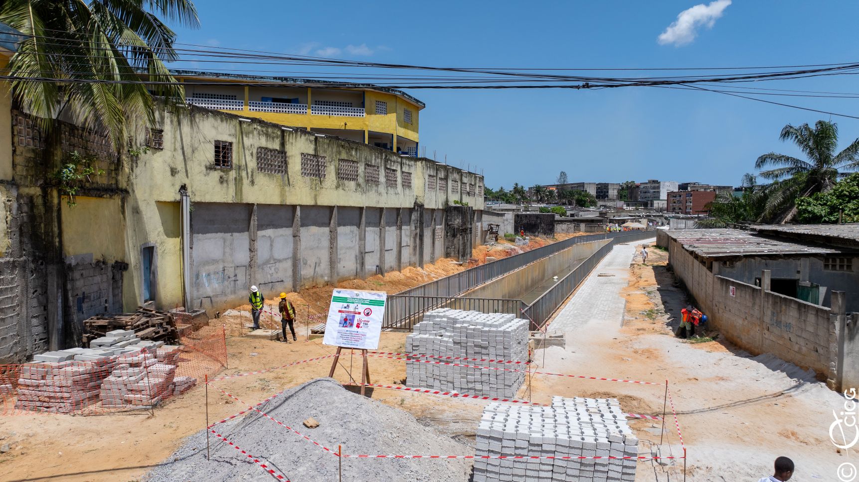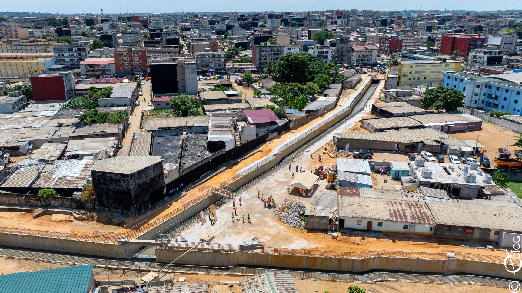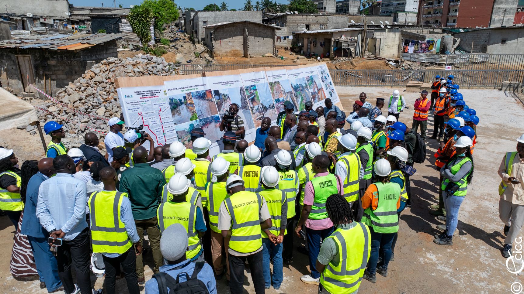 Les chantiers visités concernent les travaux de construction d'ouvrages de drainage des eaux pluviales dans les bassins de la Riviera-Bonoumin (Cocody) et le projet d’assainissement et de drainage de Yopougon-Maroc, dont le taux d’achèvement est de 90%.