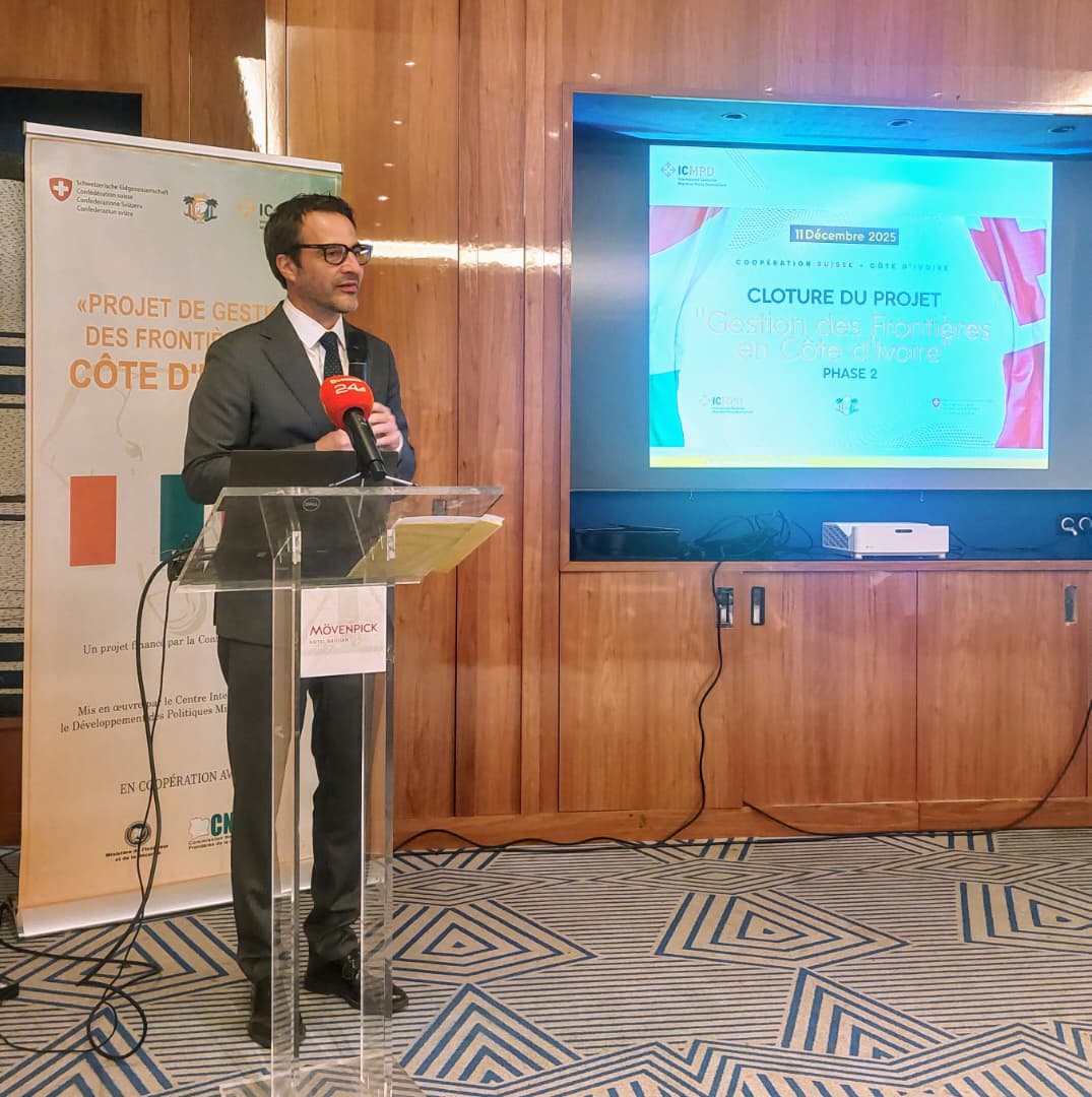 Abidjan, le 12 décembre 2025- L'exécution du projet « Gestion des Frontières en Côte d'Ivoire – Phase 2 » financé par la Confédération suisse et mis en œuvre par le Centre international pour le Développement des Politiques migratoires (ICMPD), a permis d'enregistrer des acquis majeurs. Les résultats dudit projet ont été présentés, le jeudi 11 décembre 2025 à Abidjan-Plateau en présence des principaux acteurs nationaux et internationaux engagés dans la gouvernance des frontières.