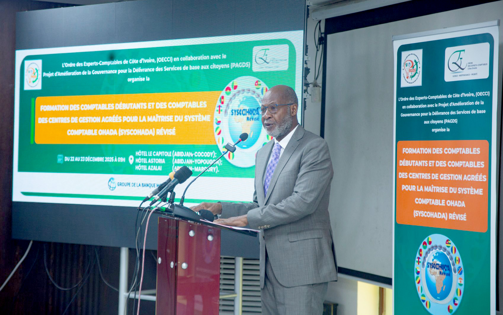 Abidjan, le 22 décembre 2025 – Le Projet d'amélioration de la gouvernance pour la délivrance des services de base aux citoyens (PAGDS), avec l'appui de la Banque mondiale et l'Ordre des Experts Comptables ont procédé, le 22 décembre 2025 à Abidjan, au lancement de la formation des comptables et des centres de gestion agréés de la Côte d'Ivoire pour la maitrise du système comptable OHADA (SYSCOHADA) révisé.
